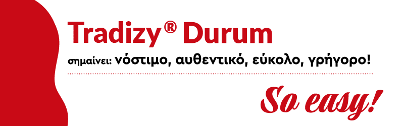 Το Tradizy® Durum είναι προϊόν όλα-σε-ένα, πολύ εύκολο στη χρήση για αρτοποιούς που ξεκινούν με προζύμι ή για εκείνους που θέλουν να εξοικονομήσουν χρόνο. Τώρα, μπορείτε να παράγετε ψωμιά με προζύμι σταθερής ποιότητας, εύκολα, γρήγορα, νόστιμα, αυθεντικά με απόλυτη ασφάλεια.